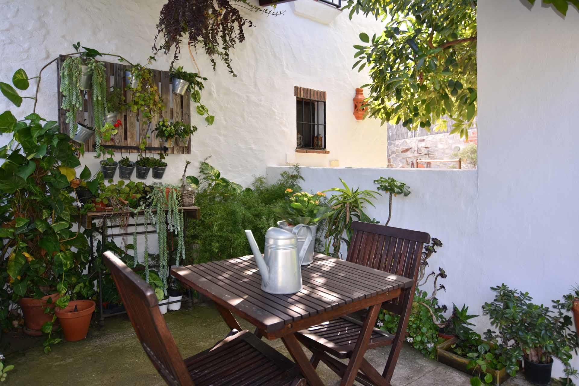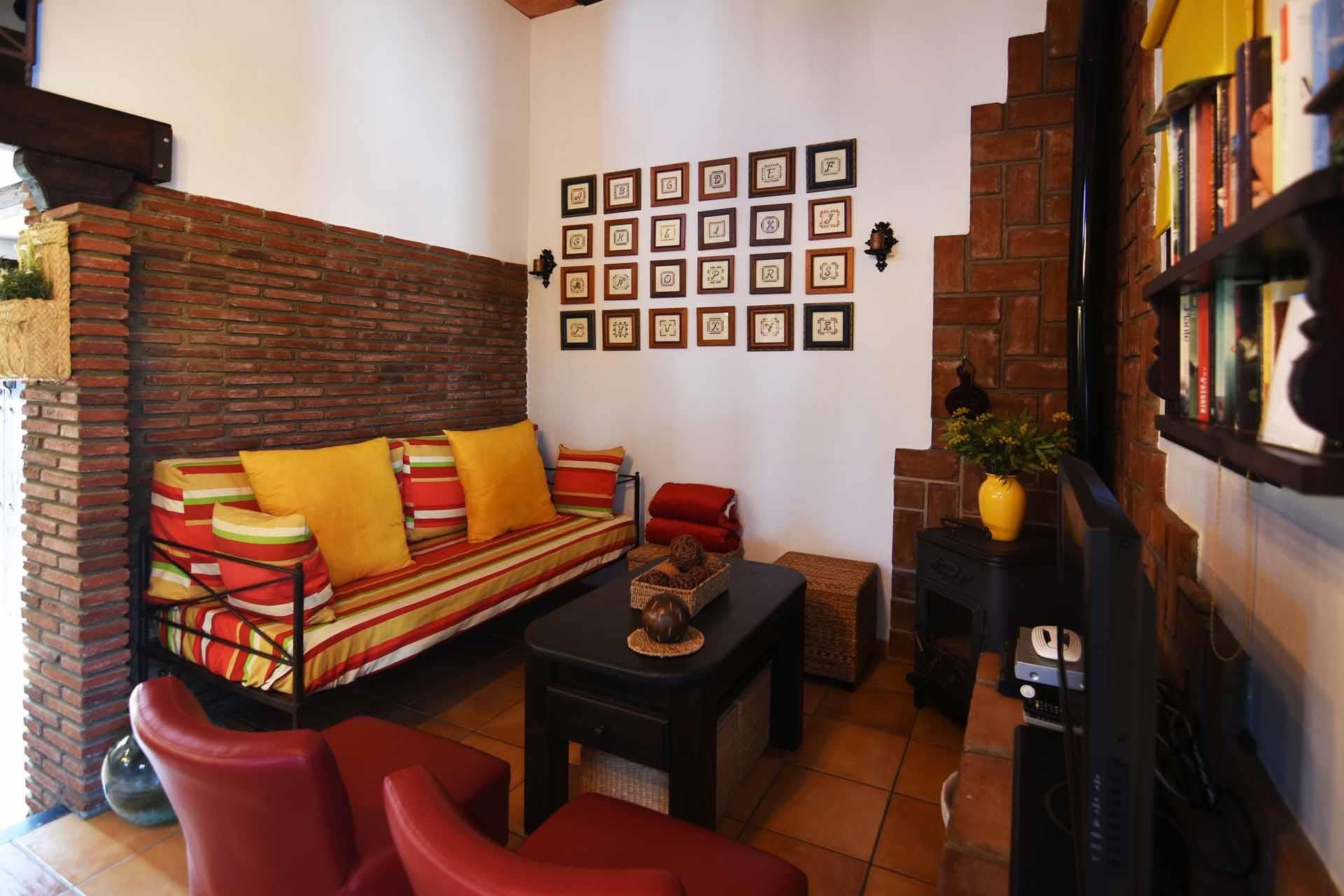 Fernando et Angela, les propriétaires de cette maison de campagne, voulaient que leur maison nouvellement construite soit du style typique des gîtes de l'Andalousie. Ils n'ont pas choisi la voie facile, donnant aux murs la forme irrégulière caractéristique des vieilles fermes, construisant des plafonds aux poutres apparentes et une terrasse avec un sol en galets. La piscine privée (8m x 4m ; 1,20m - 1,90m profondeur), encadrée dans une structure de pierres naturelles, constitue un autre exemple de la volonté des propriétaires d'imprégner le tout d'un aspect très attrayant. La terrasse bien exposée au soleil est fournie de 2 chaises longues et offre une vue imprenable sur les montagnes et le village de Frigiliana jusqu'à la Méditerranée. Sur les deux côtés est et ouest de la maison, vous trouverez une terrasse relaxante avec du soleil et de l'ombre, entourée d'un jardin avec pelouse et beaucoup de fleurs, de plantes et d'arbres. Vous trouverez les commodités pour les repas sur cette terrasse.
