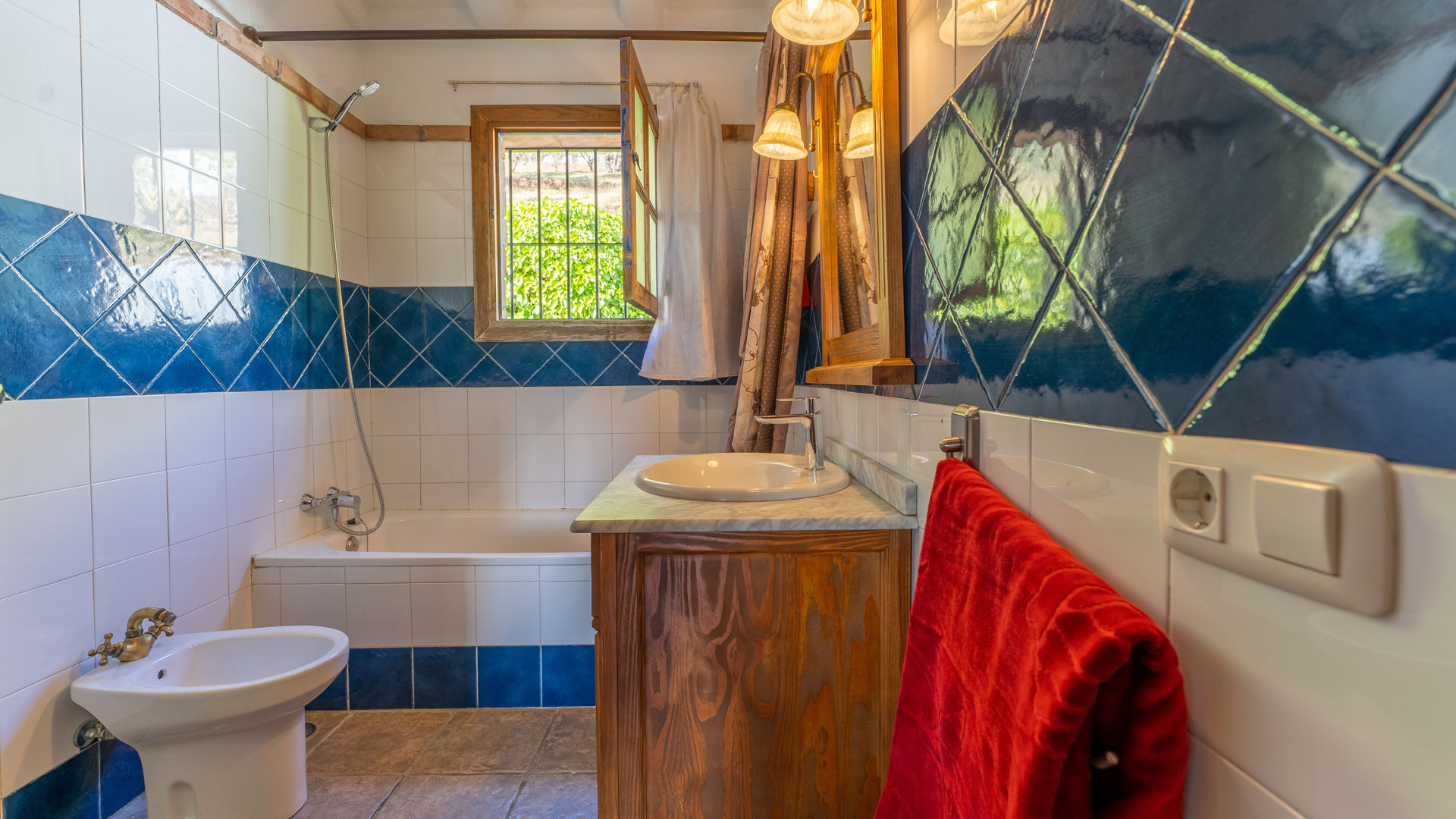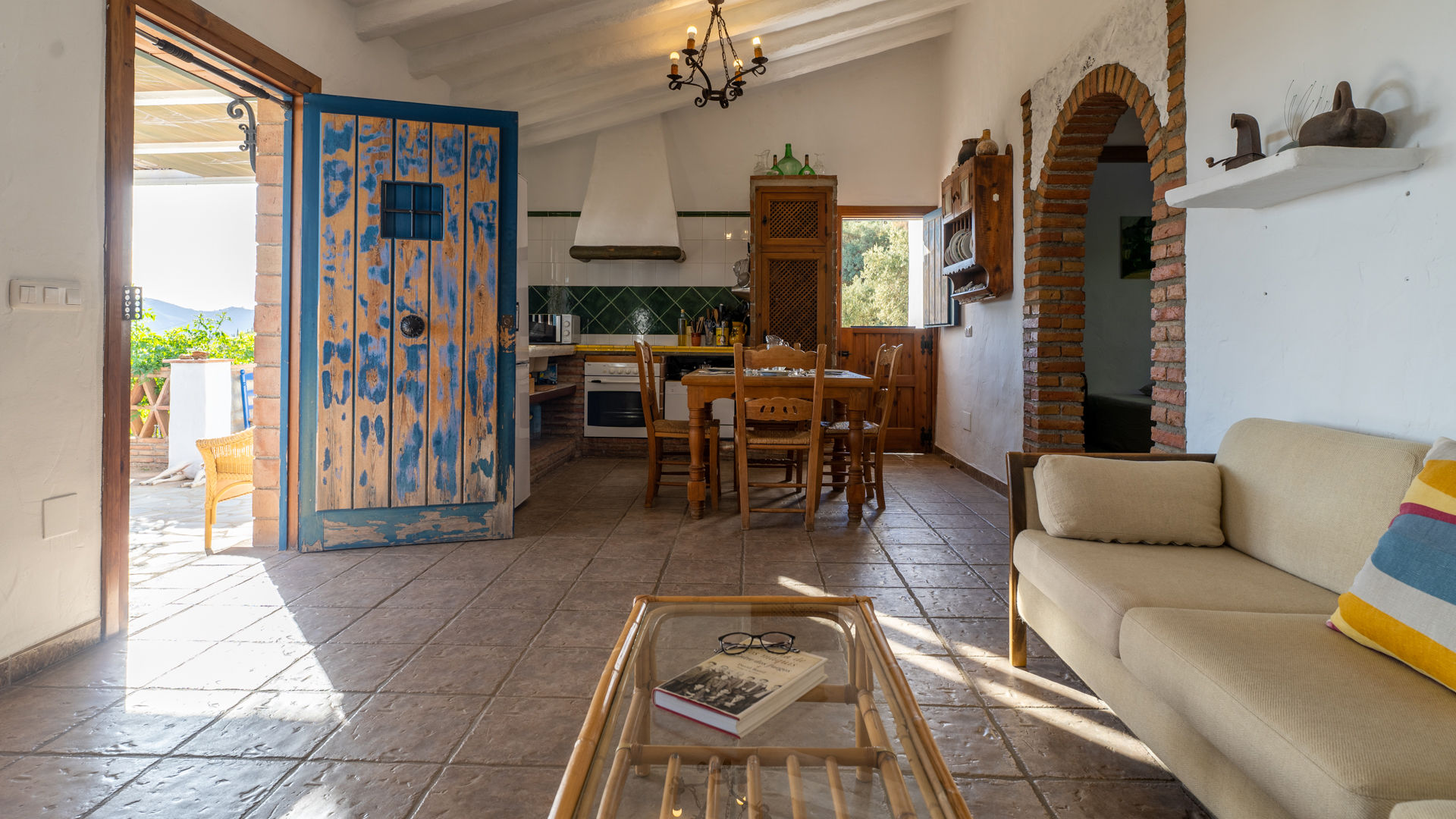Le cottage allie une ambiance paisible et romantique avec des éléments très andalous, tels que des plafonds avec poutres apparentes, des briques traditionnelles, des carreaux faits à la main et des murs blanchis à la chaux. Le salon décloisonné est uni à la salle à manger et à la cuisine. Le salon est équipé de 2 canapés, d'un poêle à bois, d'une radio avec lecteur cassette/CD et de la télévision par satellite. La cuisine entièrement équipée dispose d'une plaque de cuisson vitrocéramique 4 foyers, d'un four électrique, d'un réfrigérateur/congélateur, d'un micro-ondes et d'un lave-linge. Il y a deux chambres, une à 1 lit 2 personnes et une à 2 lits 1 personne, les deux avec un plafond traditionnel ocre qui contraste avec les murs blanchis à la chaux. La salle de bains entre les chambres est en commun et dispose d'une baignoire avec douche, WC et lavabo.