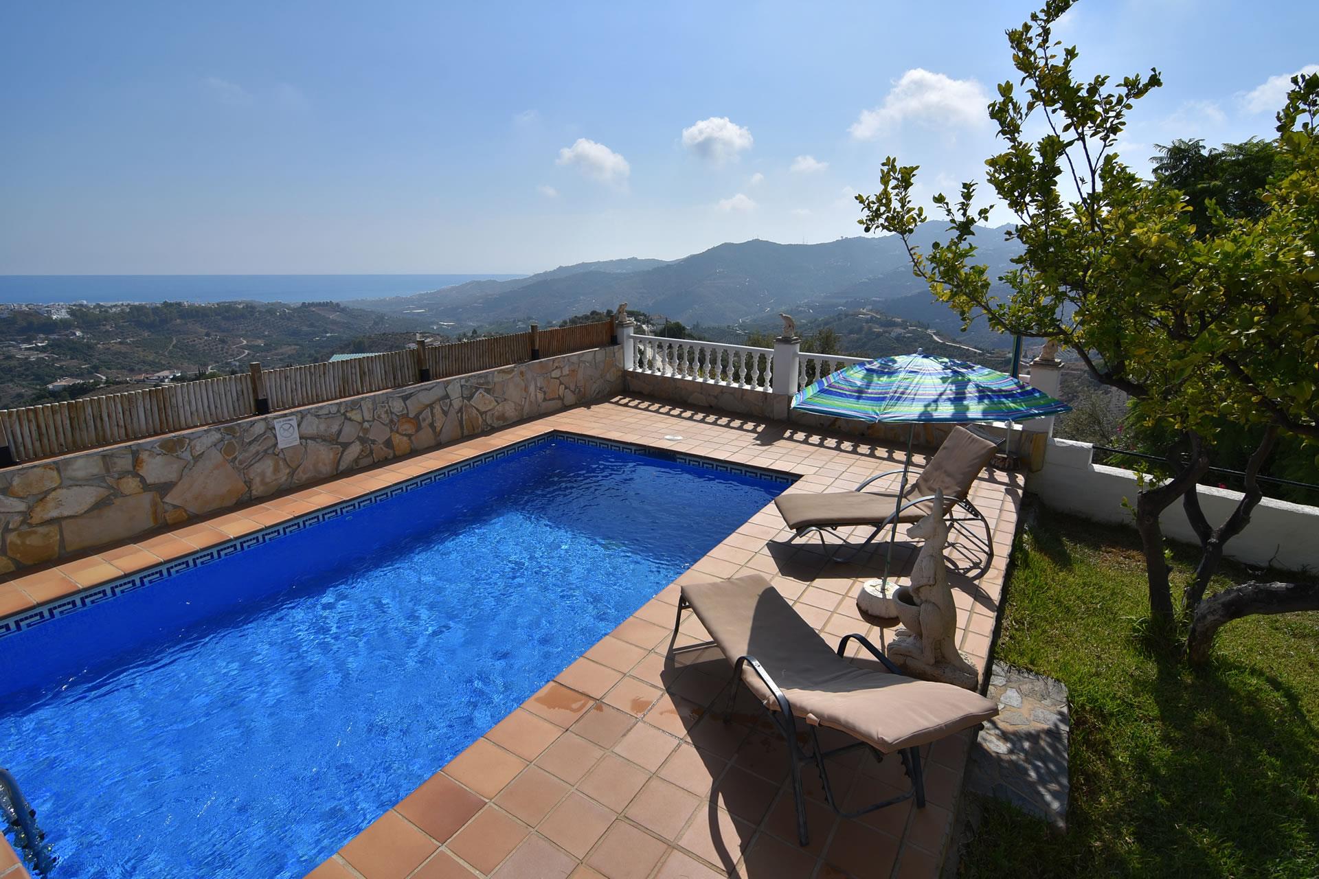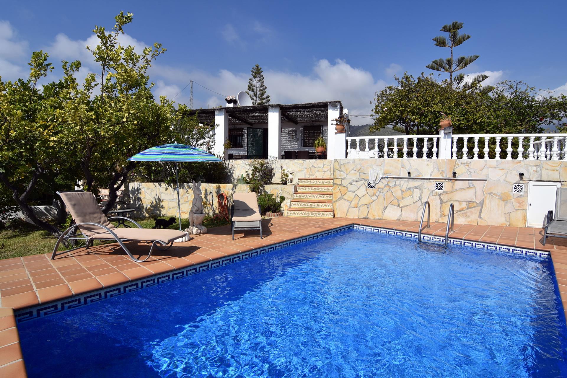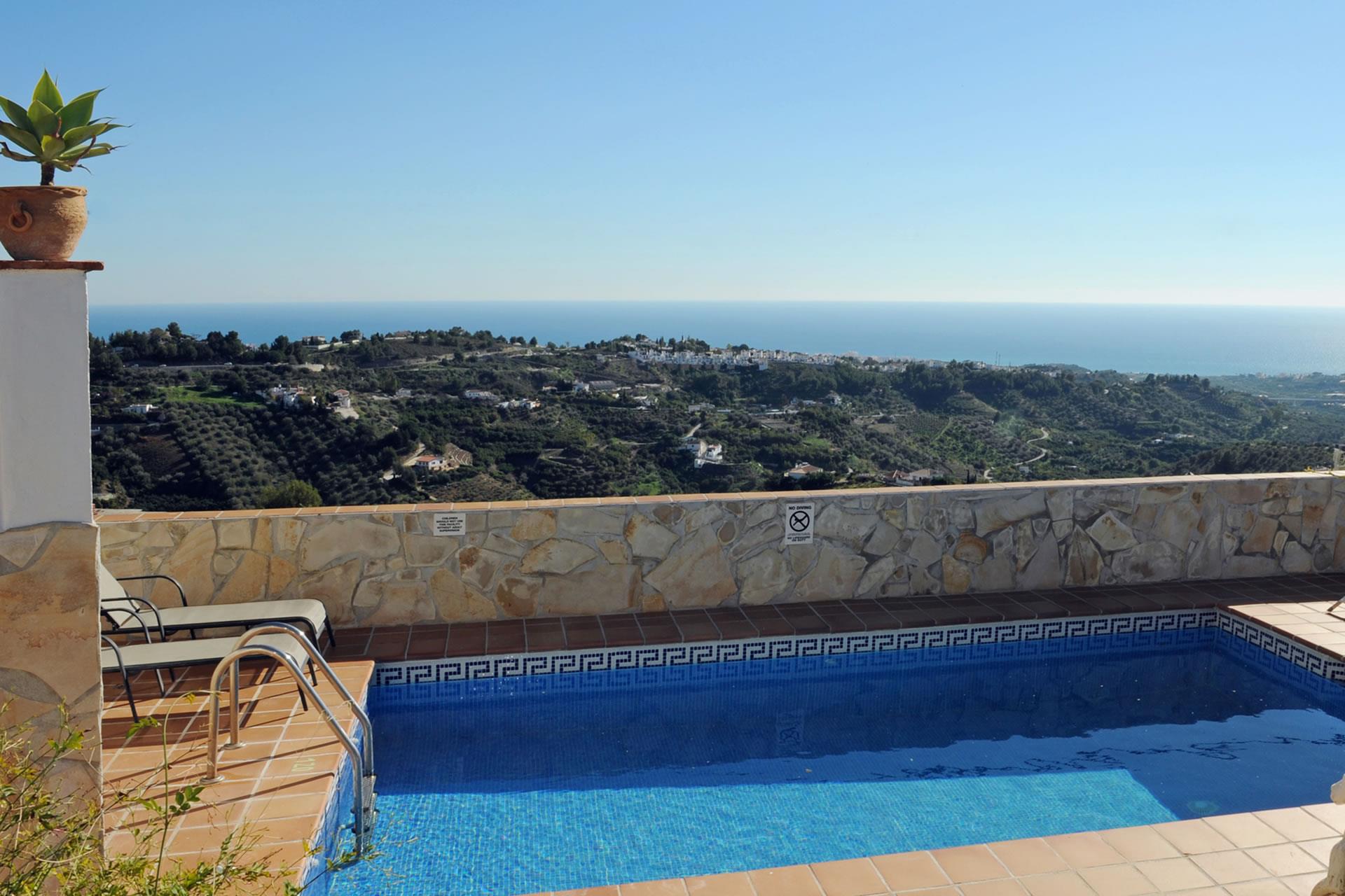 La ville de Frigiliana, avec de nombreux restaurants, bars et boutiques d'artisanat n'est qu'à 5 minutes en voiture, mais vous profitez aussi de toutes les joies de la vie tranquille avec votre propre piscine (7x3,5 m) disponible toute l'année et une splendide terrasse ensoleillée avec des chaises longues. Le chalet est entouré de terrasses offrant une vue magnifique dans toutes les directions, les plus impressionnantes étant celles vers la mer depuis la véranda qui donne sur la piscine. À côté de la maison, il y a un coin-barbecue avec un four en pierre naturelle que les gens de la place utilisent pour préparer le typique cochinillo segoviano (cochon de lait). Bien sûr, vous pouvez également l'utiliser pour cuire vos pizzas préférées que vous pourrez déguster à l'air frais dans le coin-repas à côté du barbecue. Si vous désirez plonger dans l'océan, les plages de Nerja sont seulement à 7,5 km. Vous pouvez également profiter des excellentes paellas à la plage de Burriana.