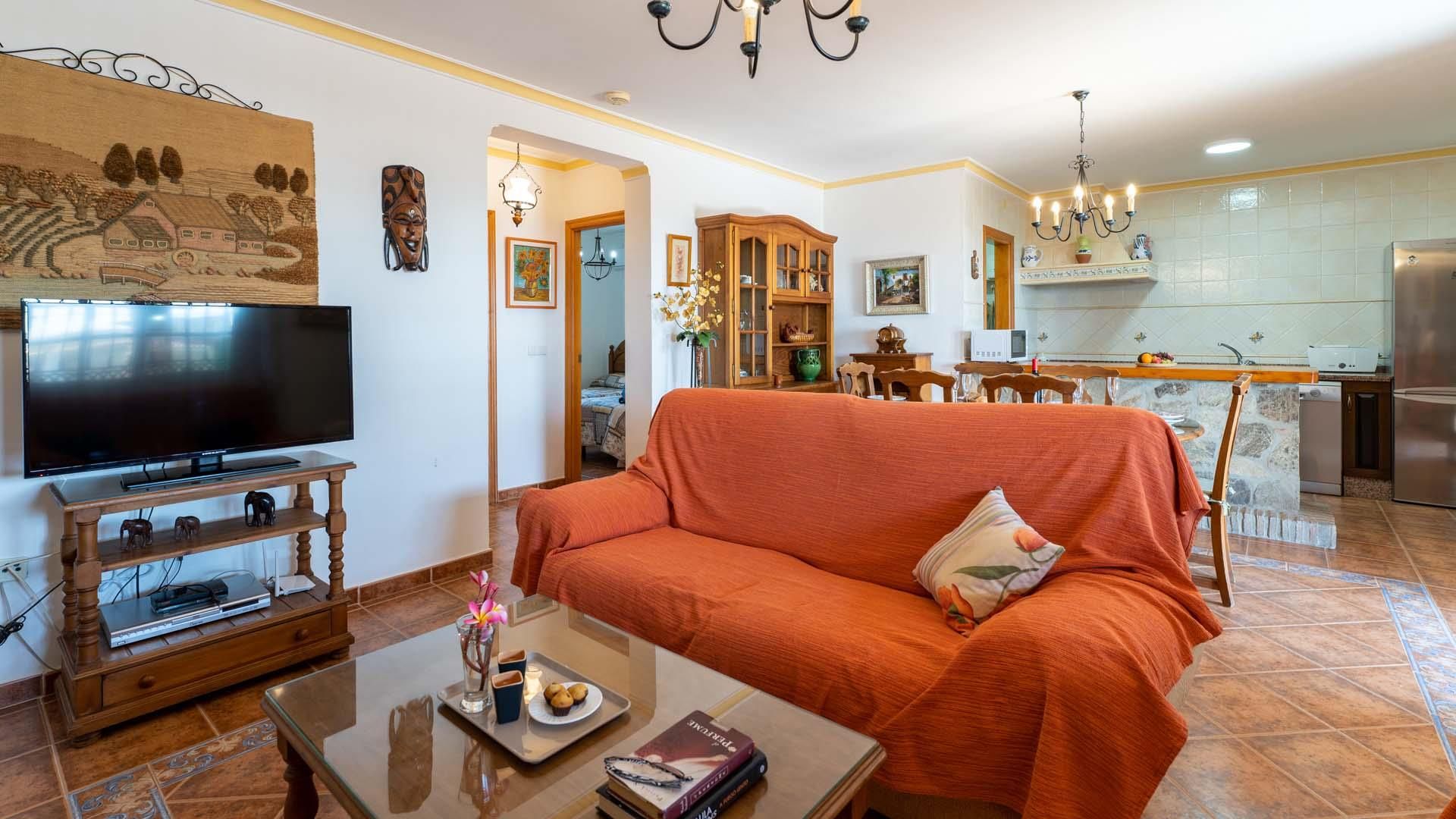 Le logement est aménagé sur un seul étage et il est confortablement meublé dans un style classique. Le salon/salle à manger est un espace ouvert avec la cuisine et dispose d’une cheminée, d’une table à manger et de chaises, de 2 sofas, d’un fauteuil et de TV satellite. La cuisine est équipée d’un bar pour petit déjeuner, d’un réfrigérateur/congélateur, d’une plaque de cuisson, d’un four électrique, d’un lave-vaisselle, d'un micro-ondes et d’une machine à laver. La chambre à coucher principale a un lit à deux places et une salle de bains avec WC et lavabo. La deuxième chambre à coucher est également équipée d’un lit à deux places et la troisième chambre a deux lits individuels. Elle dispose d’une salle de bains familiale avec baignoire, WC, lavabo et bidet.