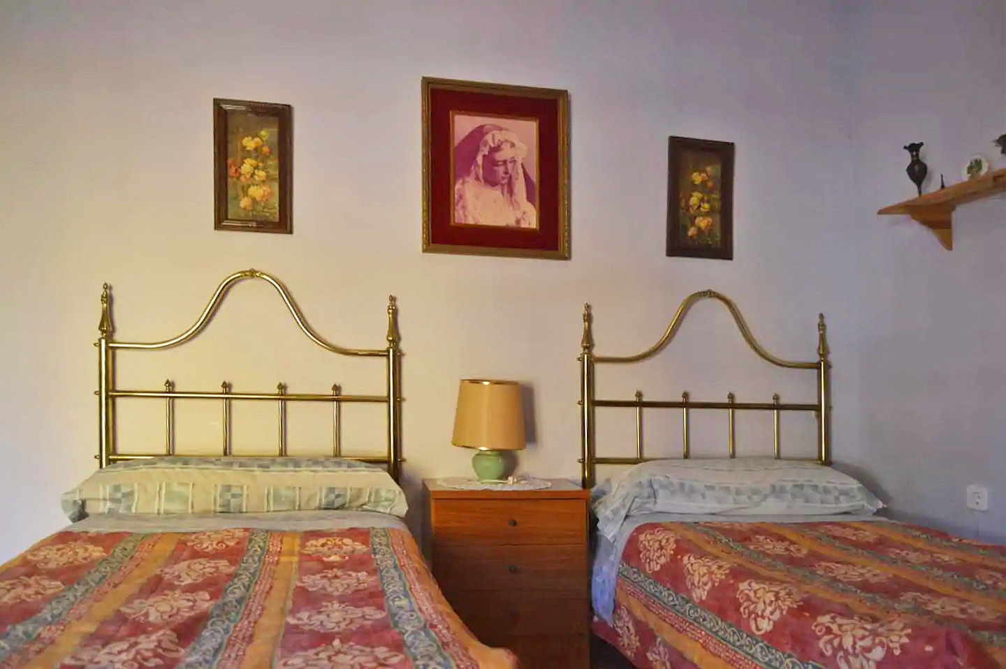 Premier étage: une chambre à 1 lit 2 personnes et deux chambres à 2 lits 1 personne. Les deux chambres à 2 lits ont un canapé-lit pour une personne supplémentaire. Salle de bain complète avec douche dans la baignoire, WC, bidet et lavabo. La climatisation est offerte aux 3 chambres du premier étage et il y a un ventilateur dans le salon/salle à manger du rez-de-chaussée.